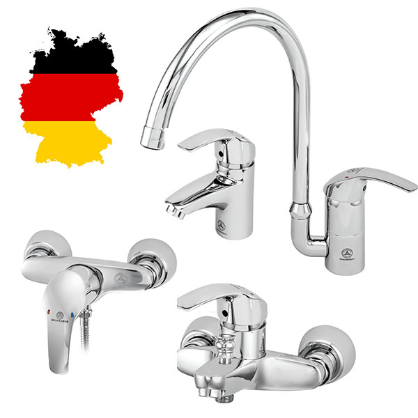 سری شیرآلات آلمانی قهرمان شامل شیر روشویی، شیر توالت، شیر دوش، شیر ظرفشویی علم بلند و شیر ظرفشویی دیواری است.